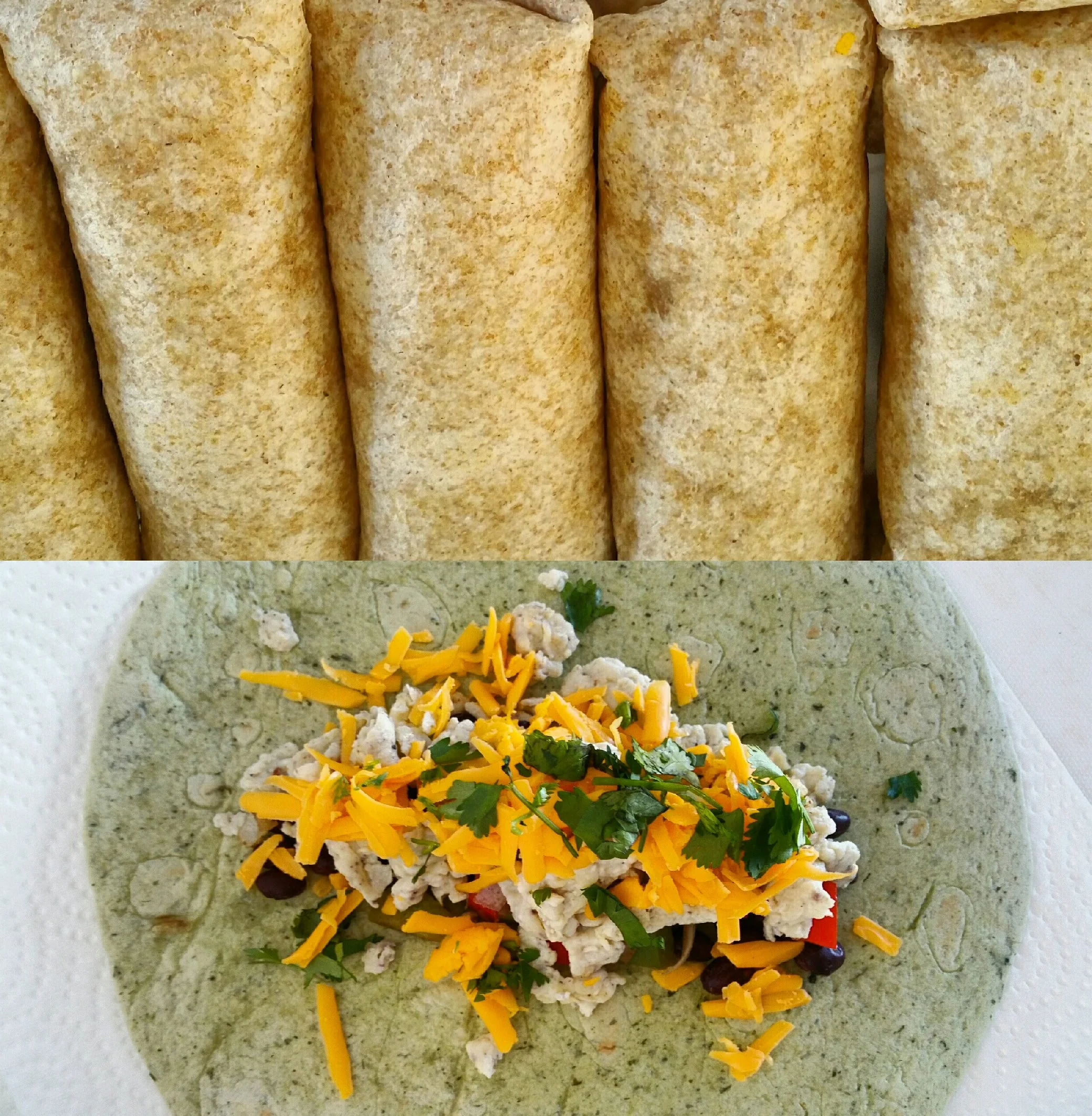 2. Assemble the burritos in the following order: beans > eggs > vegetables > cheese > cilantro. Do not overfill the burritos.